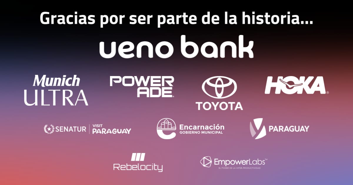 Un reconocimiento especial a ueno bank, nuestro Sponsor Titular, por su compromiso con el deporte y el desarrollo del Paraguay. Su respaldo constante impulsó cada brazada, pedaleo y zancada de este evento inolvidable.